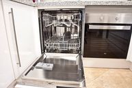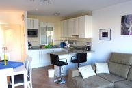 La cocina de lujo con encimera y barra de granito pulido (incl. 2 taburetes) lo invita a cocinar y está cómodamente equipada con lavavajillas, estufa con horno y campana extractora en el exterior, microondas, nevera y congelador, tostadora, hervidor de agua, cafetera, termo, exprimidor así como una gran batidora. Los cubiertos, vasos, platos, ollas y sartenes, así como los accesorios necesarios para cocinar, como cuchillos, ralladores, etc. son abundantes.