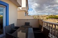En el exterior, el balcón este (mesa grande y 6 sillas) con vista a la bahía de Azohía, la terraza oeste para las horas soleadas de la tarde y una terraza en la azotea con vistas panorámicas al mar, el puerto y las montañas del Puerto de Mazarrón. En el armario de almacenamiento frente a la casa encontrará sillas plegables y sombrillas para la mesa pequeña y sillas plegables para la playa o la piscina. También hay algunos dispositivos de limpieza (escobas, limpiadores, etc.) guardados.
