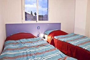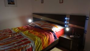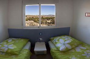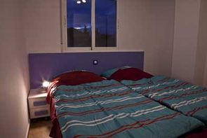 En el amplio dormitorio hay una cama de 150 cm x 200 cm con luz LED de peluche en la parte de la cabeza; Las dos habitaciones pequeñas tienen dos camas de 90 cm x 200 cm, que se pueden organizar como una cama individual o una cama doble. Hay un armario en cada habitación, que también tiene mantas de lana para noches más frescas.